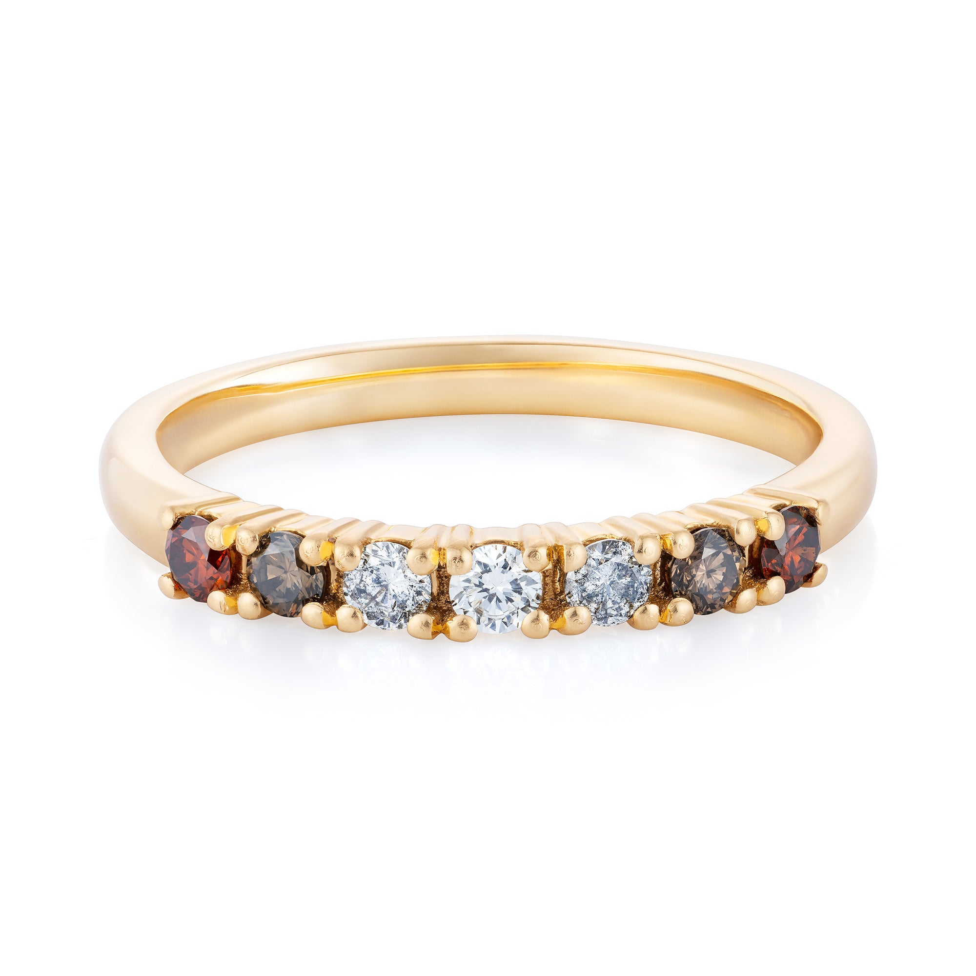 I hand-selected a gradient of natural diamonds that shift from bright white to rich chocolate and warm cinnamon on a classic 18ct yellow gold band.
